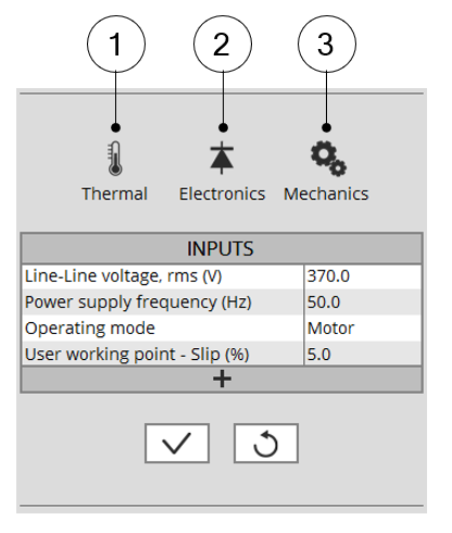 | 1 | Button to define winding and squirrel cage temperatures to be considered in the test. |