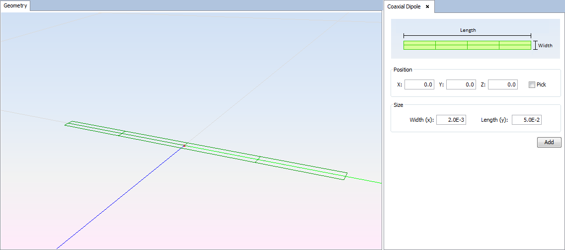 This section explains how to add a coaxial feed dipole.