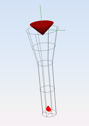 Clicking on 'Add' button, the current previsualization turns on the final visualization for the antenna with a red cone for the dipole.
