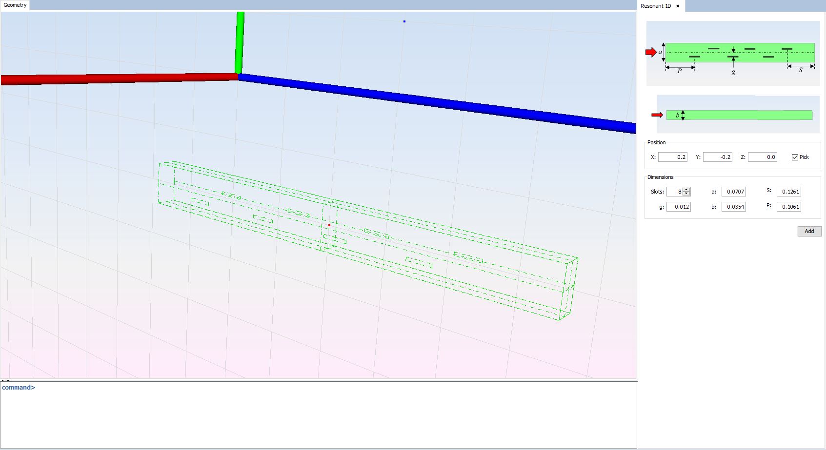 This section explains how to create a resonant slot linear (1D) array antenna fed by a rectangular waveguide.