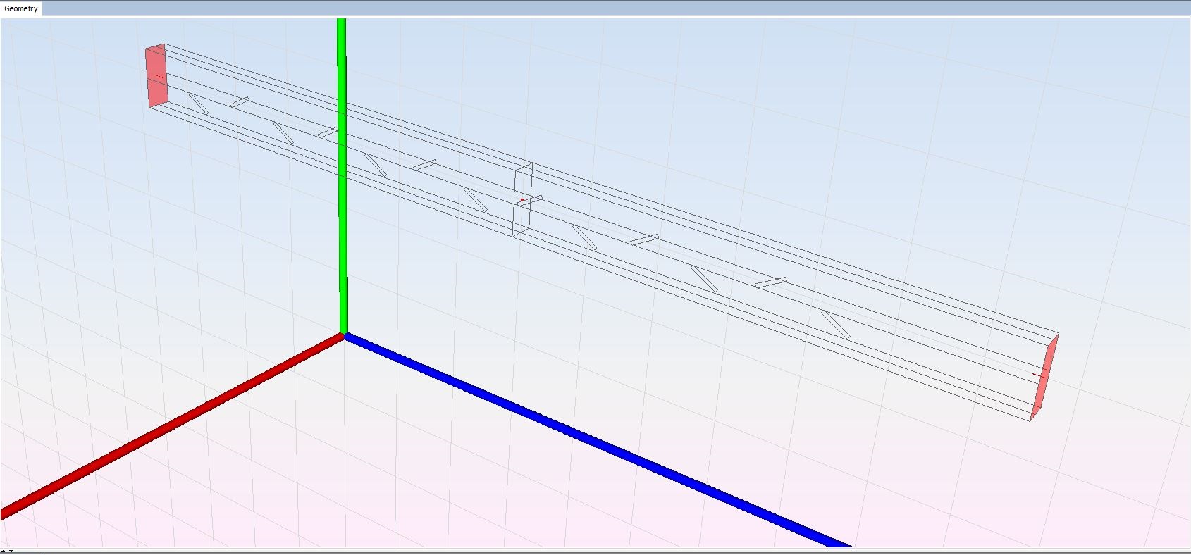 Clicking on 'Add' button, the final visualization for the antenna with red filled waveguide ports (input and output) will be shown.