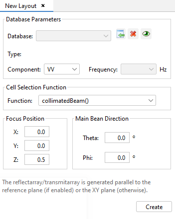 This option allows the user to create a new reflectarray or transmitarray layout. Three elements are required to create a reflectarray layout:
