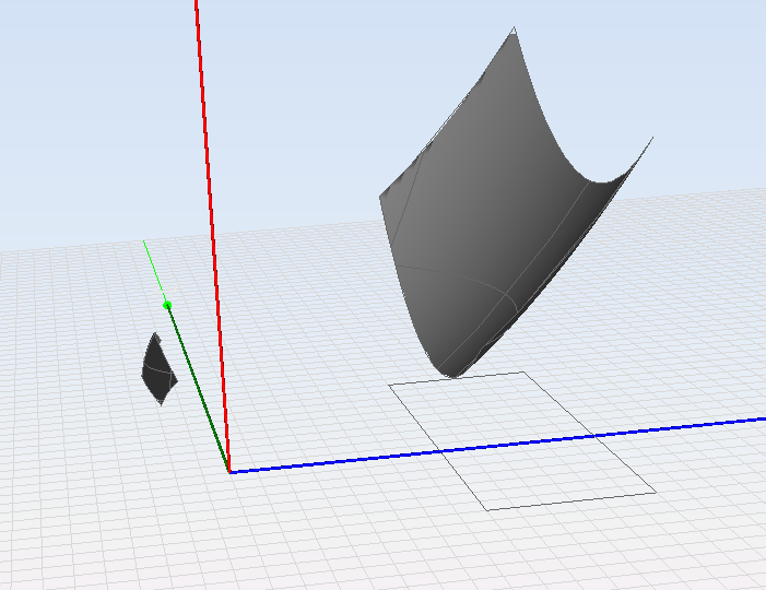 - Custom shape This option allows the user to customize the shape of the main reflector (and consequently, the shape of the secondary reflector) by selecting a closed set of curves that define the projection of the main reflector on the XZ plane. To do this, the user needs to select the "Custom shape" option, select the set of curves and press the "Select curves" button (the preview will be updated if the selected curves are adequate).