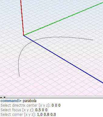 - parabola -n <name> -p <centerX> <centerY> <centerZ> <focusX> <focusY> <focusZ> <pX> <pY> <pZ>