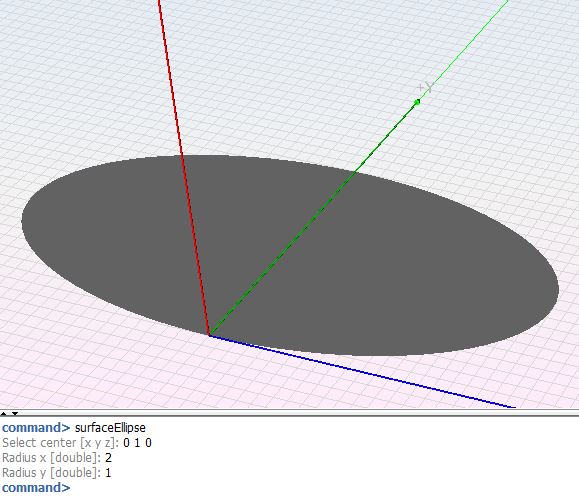 - surfaceEllipse -n name -p x y z radiusX radiusY: Generates an ellipse surface.