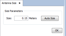 This option allows the user to scale the antennas represented in the geometry view. The user needs to indicate the factor of scale. Pressing OK will cause the antennas in the geometry view (and the new created antennas) to be scaled. The Auto Size button allow the user to perform this task automatically.