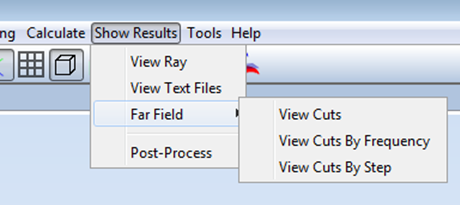 - View Cuts: display a plot that relates the amplitude against a Theta cut or a Phi cut.