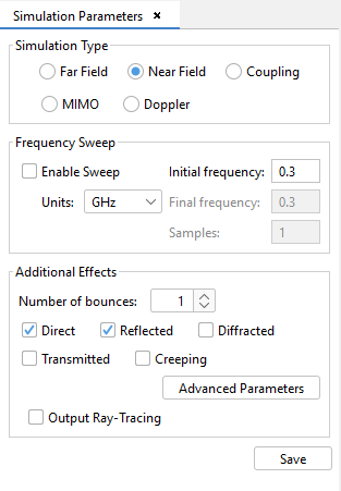 After setting up the simulation parameters, press the Save button to save the configuration.