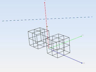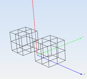As we can see, we have used the parameters created in the previous step to define a varying Y coordinate in the boxes. The result is shown in the following figure. Note that the following figure depicts the state of the geometry in the first step (i.e. both parameters are equal to the first value in their set of values):