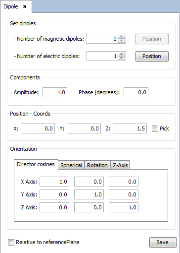 Step 5: Define an antenna over the cube by selecting the option Antennas → Dipole Antenna and setting up the antenna parameters as in the following figure: