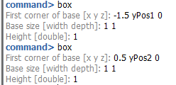 Step 3: Now we will create the geometry for the simulation. Let’s create both boxes using the command line (the command line is the panel at the bottom side of the window, below the geometry view). The following figure shows the commands to be entered into the command line in order to create the boxes.