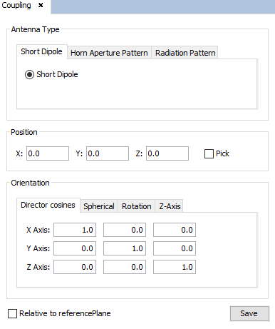 - Position-Coords: location of the passive antenna (from the keyboard or using the mouse with ' Pick Point Edition' option).