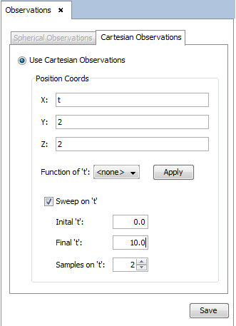 define a parametric sweep on t selecting the check box Sweep on 't'. The coordinates