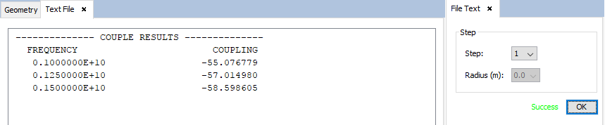 This option allows the user to visualize the coupling values of the simulation for a given step and observation in text format. To do so, the user needs to select the step and observation and press the "OK" button.