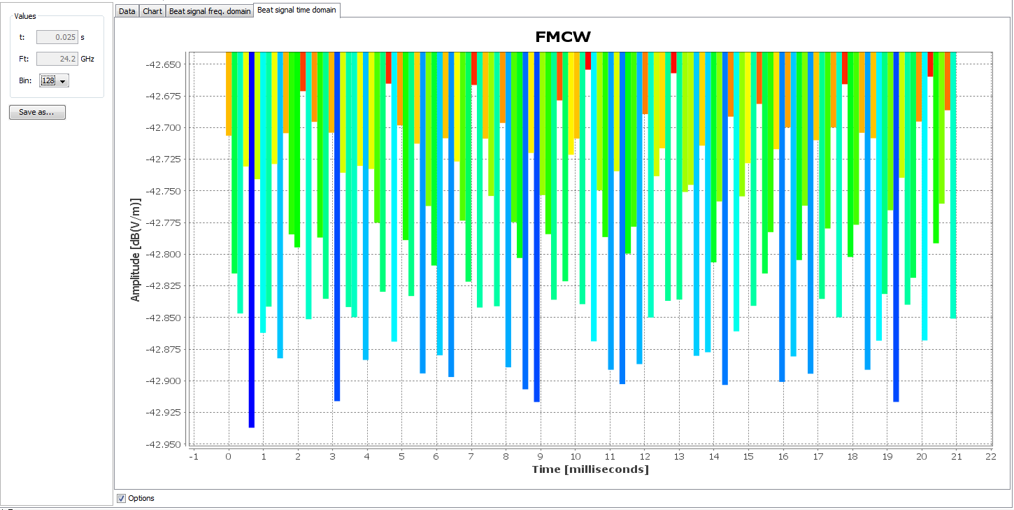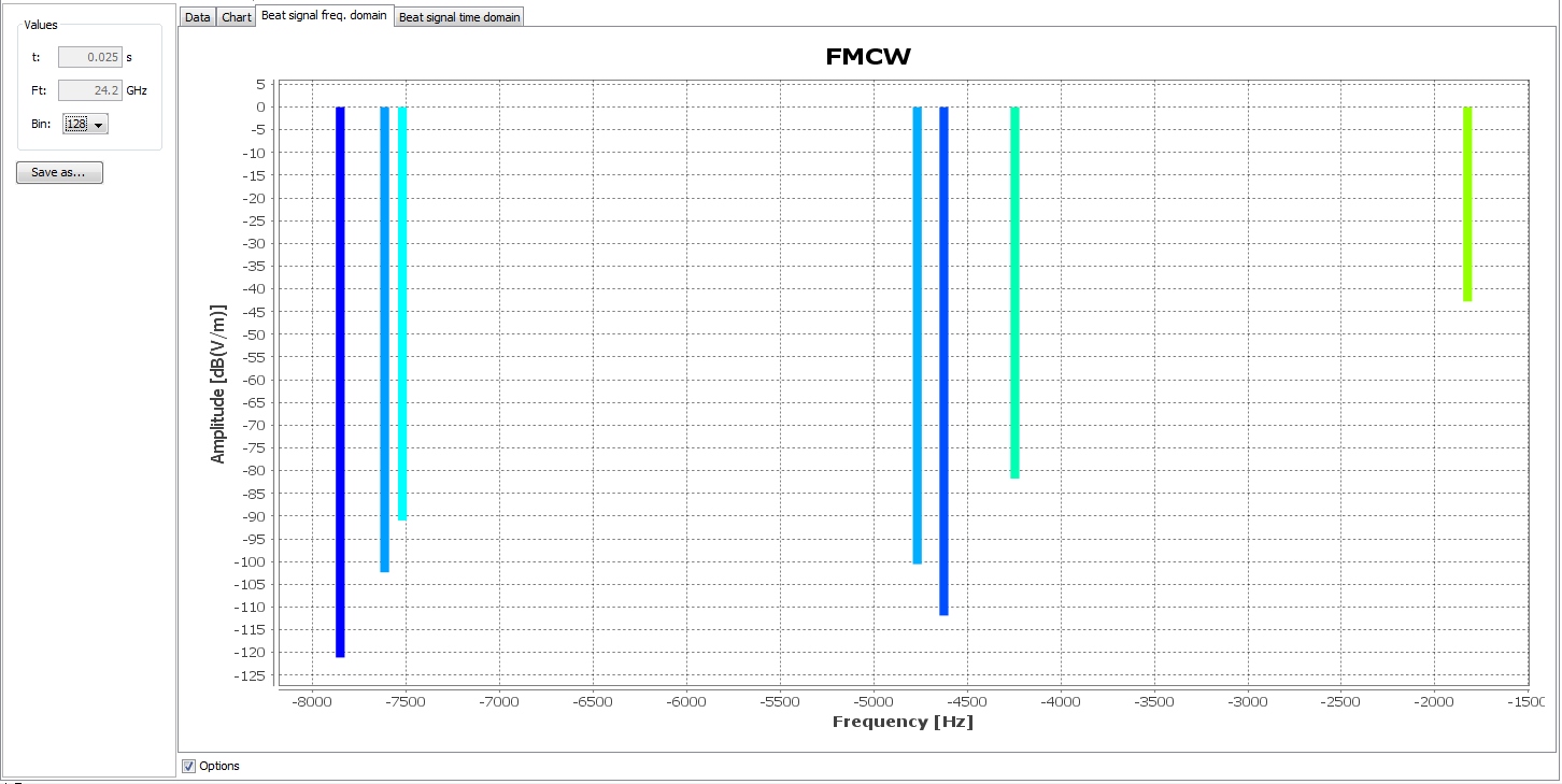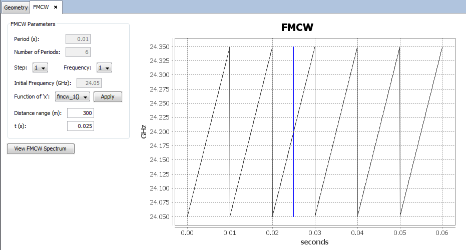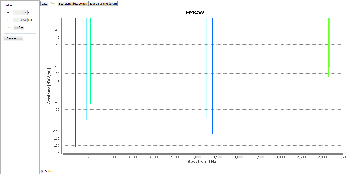 When all the previous parameters will be defined, clicking on "View FMCW Spectrum" button, the spectrum chart appears.