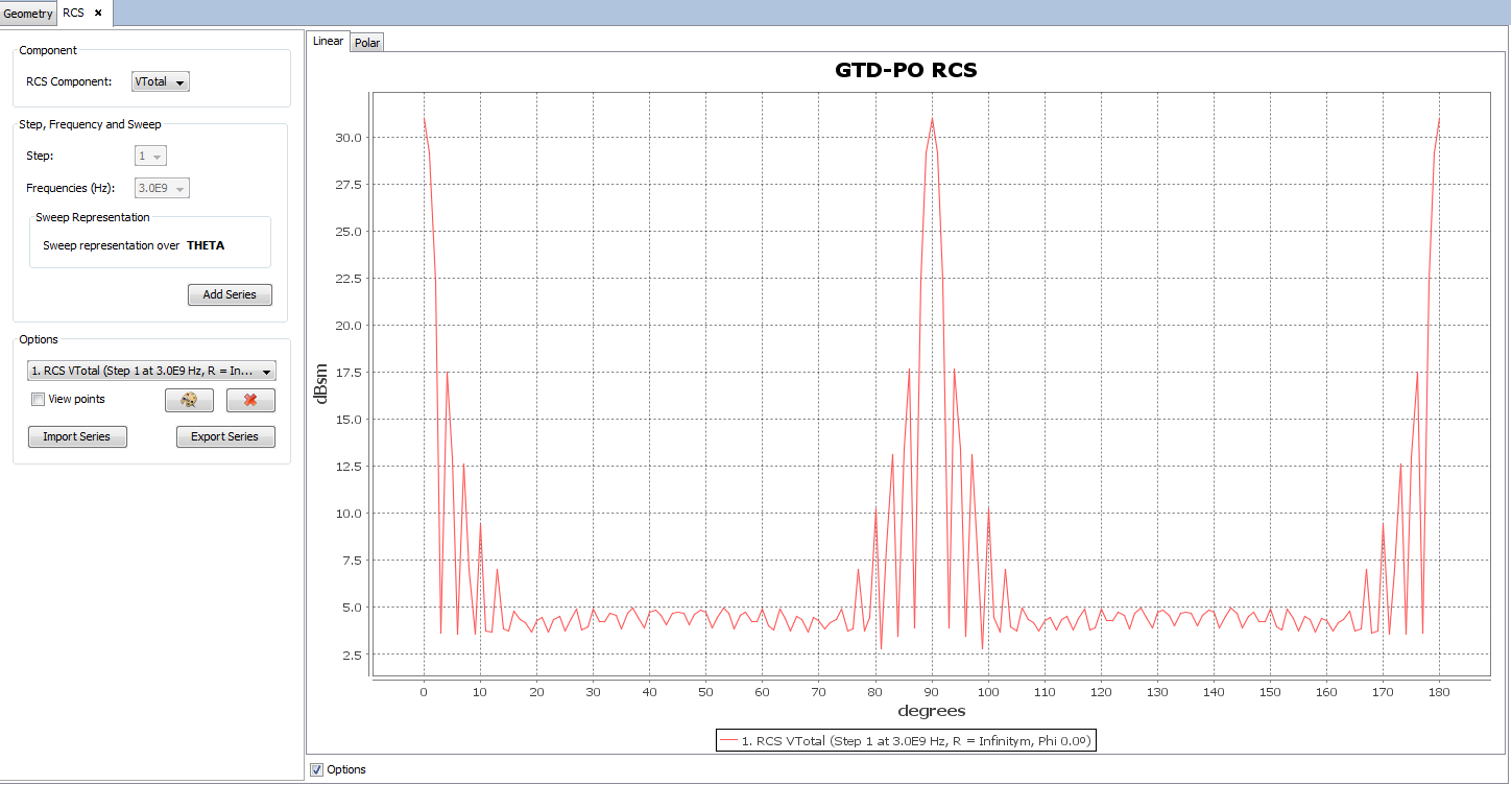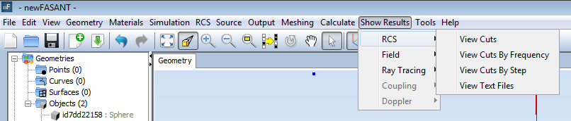 When the simulation finishes we can visualize the simulation results. Click on Show Results →RCS→ View Cuts, which allows the user to see the RCS graphic.