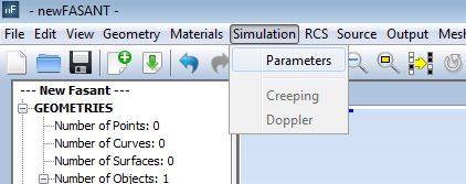 On the top left side of the newFASANT window, the user can enter the desired parameters for this simulation, as shown in next Figure.
