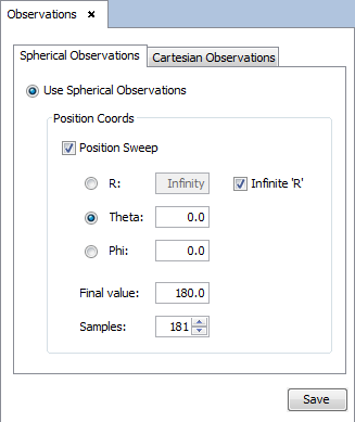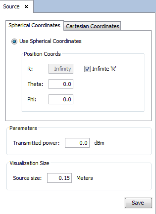 Introduce the source position (r, theta, and phi), as shown in the next Figure and left-click on the Save button.