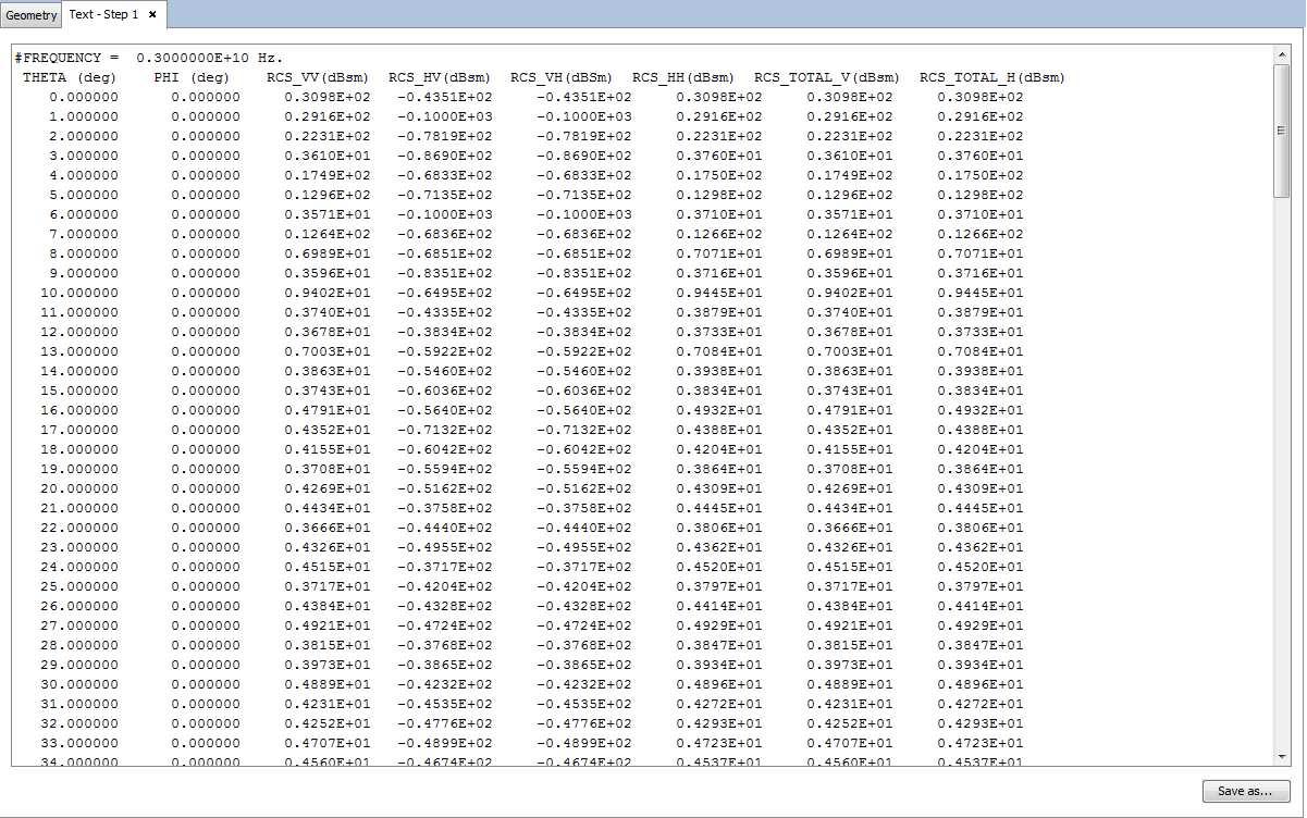 Click on Show Results → RCS → View Text Files. Then select the Steps and press OK to see the RCS data file.