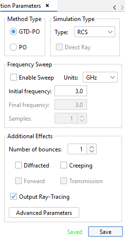 Select 1 bounce (simple reflection) and a frequency of 3.0 GHz and left-click the Save button.