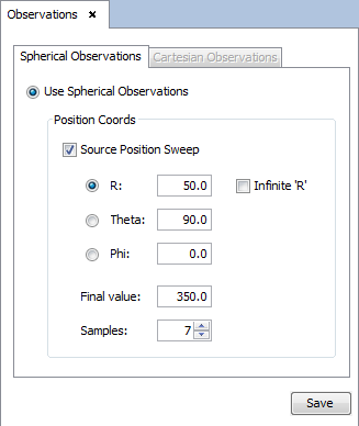 Click on Output -> Observation directions to define the parameters.
