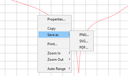 This option allows the user to save the chart panel as a file. When this option is selected a submenu appears to select the file format to the output file: