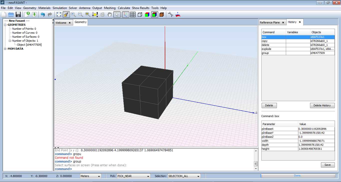 Then, select all and click on Group. We can see the result in the tree on the left of the subsequence. Now we can see that we have zero surfaces and an object.