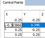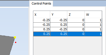 Alternatively, for a more precise behaviour, it is possible to double click a cell from the table and manually set the value for that cell. It is possible to change any cell, including position and weight for the control point.