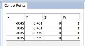 A new window will appear on the right side showing a table with all the x, y, z components for each control point the surface is made of.