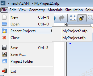 This menu lists the last projects recently used. The user can open the project immediately by clicking on any project of the menu list.