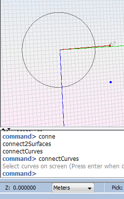 This options allows the user to connect two distinct curves (that are in contact at least in one pont) into one single curve. By using this operation, the two curves are combined in just one curve. The following example shows the connection of two arcs to get a circle.