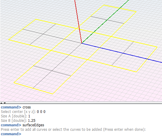 This option allows obtaining the curves that bound the selected surfaces (multiple surfaces and objects may be selected). After selecting the surfaces to be considered, the corresponding curves appear as selectable curves to be added.
