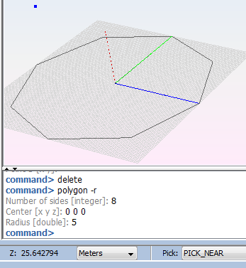 This option allows the user to create a regular polygon specifying the number of sides, the center and the radius of the circumference it is inscribed in.