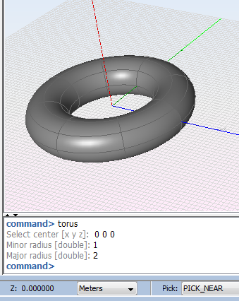 Torus This option allows creating a torus with the center, the minor radius and the major specified by the user. Figure 1. Creating a torus