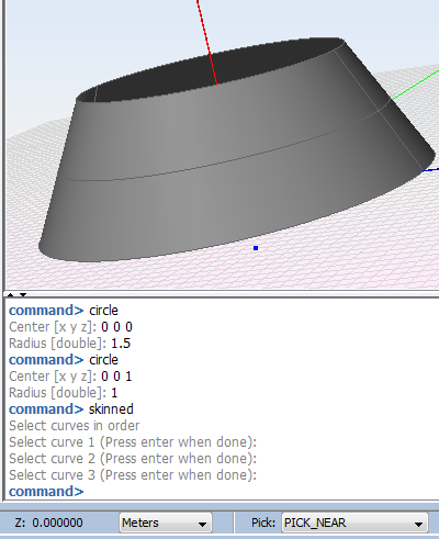 This function creates a surface with a set of curves that is required in order. Skinning is a process of blending the section curves together to form a surface. The blend direction is the v direction, sometimes called the longitudinal direction.