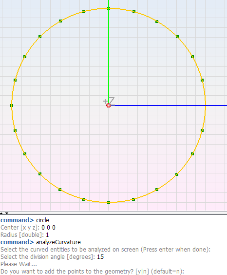 This option identifies approximately when the curves or surfaces vary their direction at a given angle. It may be useful for splitting strong curvatures, so the meshing-analyzing processes should be simpler. The command only shows the points where the curves varies the desired angles, but it also asks to the user whether the detected points must be added to the geometry or not.