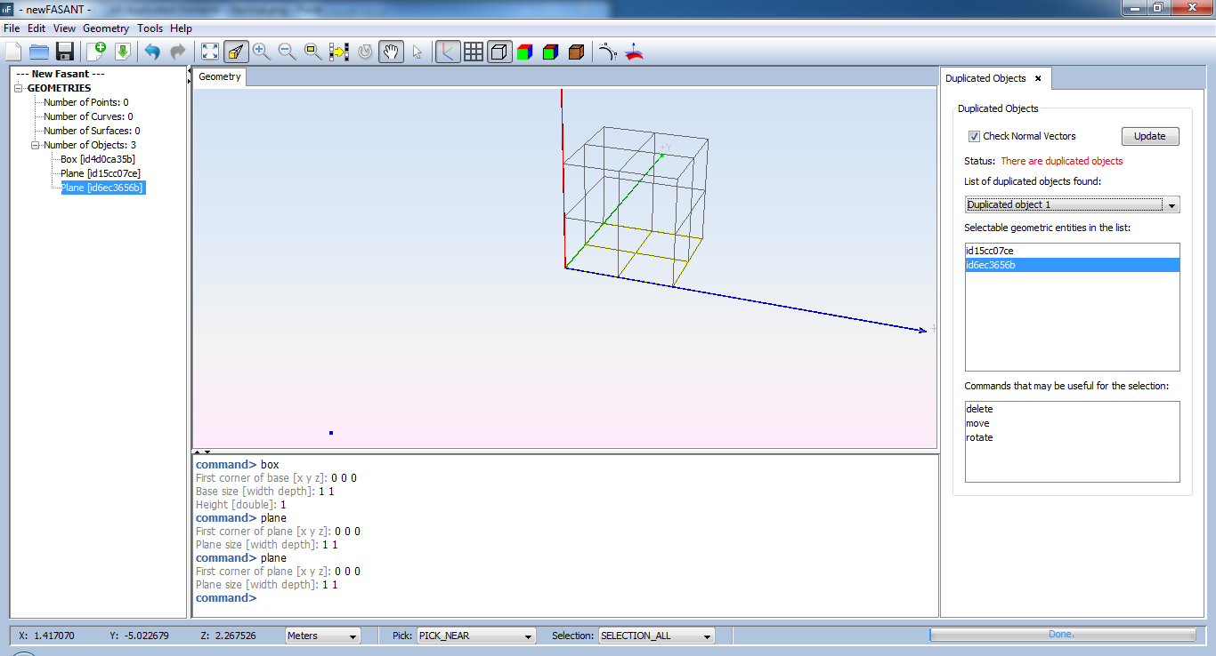 Click on Geometry – Tools – Duplicated Objects to check the duplicated elements identified in the geometry.