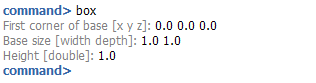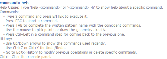 The newFASANT command console is a command-line shell which supports both interactive and batch-file commands to manage geometry. The command line supports geometric construction with the mouse. All commands are accessible from menu.