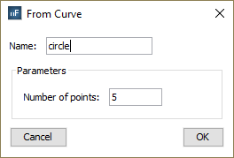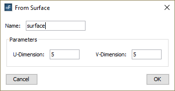 In the other hand, the following dialog will appear if the user does the same with a surface node. In this case, it is necessary to specify the number of points to sample in each direction of the parametric surface.