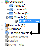 In the GTD module, it is possible to add creeping behaviour to an object or surface by just clicking and dragging a object node and dropping it into the “Creeping objects” node. Please nota that the “Creeping” simulation option must be enabled before doing this.