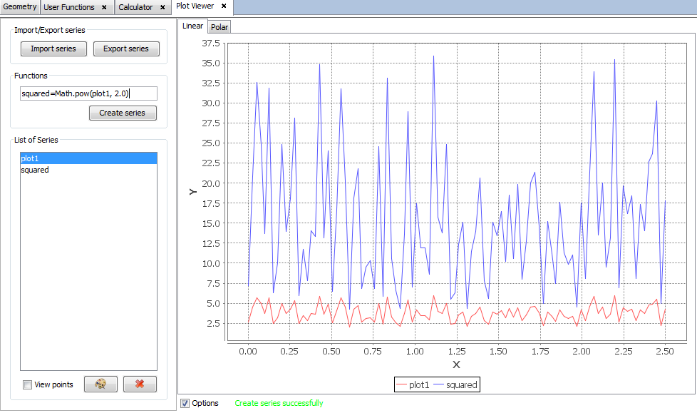 Values returned by user functions can also be plotted. To do that, the values must be previously computed in the Calculator tool.