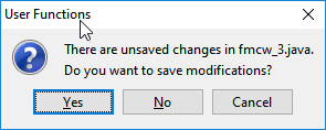 - Delete user function it will ask the user for confirmation, before deleting the selected user function file from the hard disk. This operation cannot be undone. Keep in mind that once an user function is deleted, projects that depend on that user function may behave unexpectedly unless it is created again. User functions are not saved in project files.