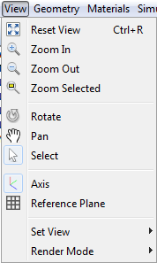 View Menu These options allow the user to configure the properties of the main window area. Figure 1. View menu