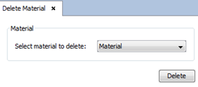 This option allows the user to remove a previously defined Material. When the Materials –Delete option is selected, the Delete Material window (following Figure) appears. When the material to be deleted has been selected in the Select material combo box, the action can be confirmed by clicking on Delete.