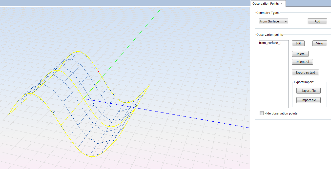 Click on OK button to insert the observation points from the surface, or abort the insertion by clicking on Cancel button.
