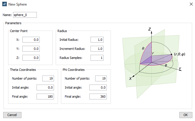 - Center Point X, Y and Z coordinates where the sphere will be centered on.
