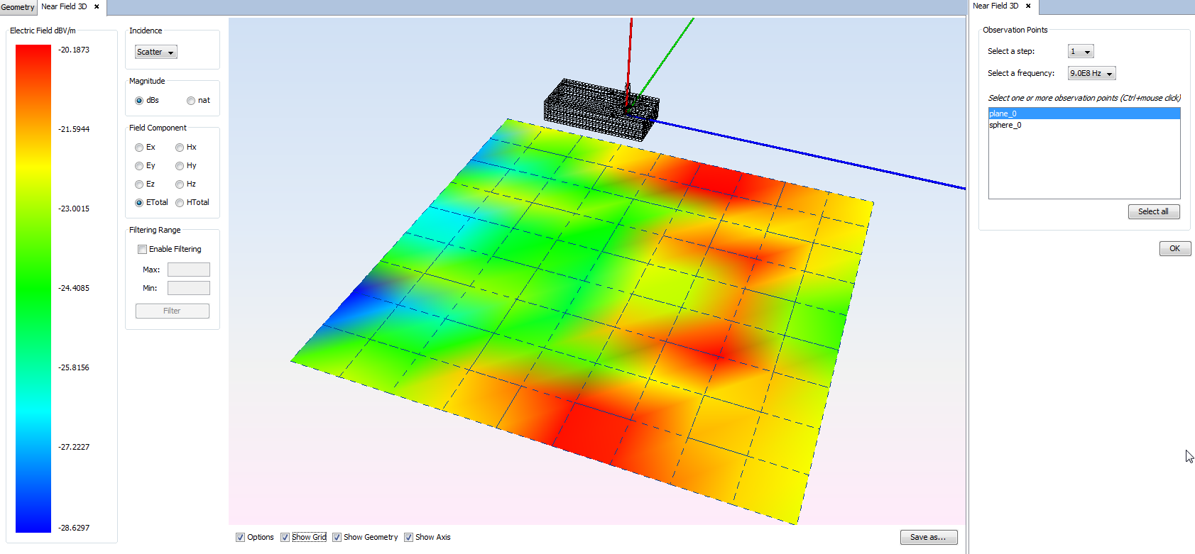 - Show Grid Enable this option to visualize the grid of the near field observation entity.