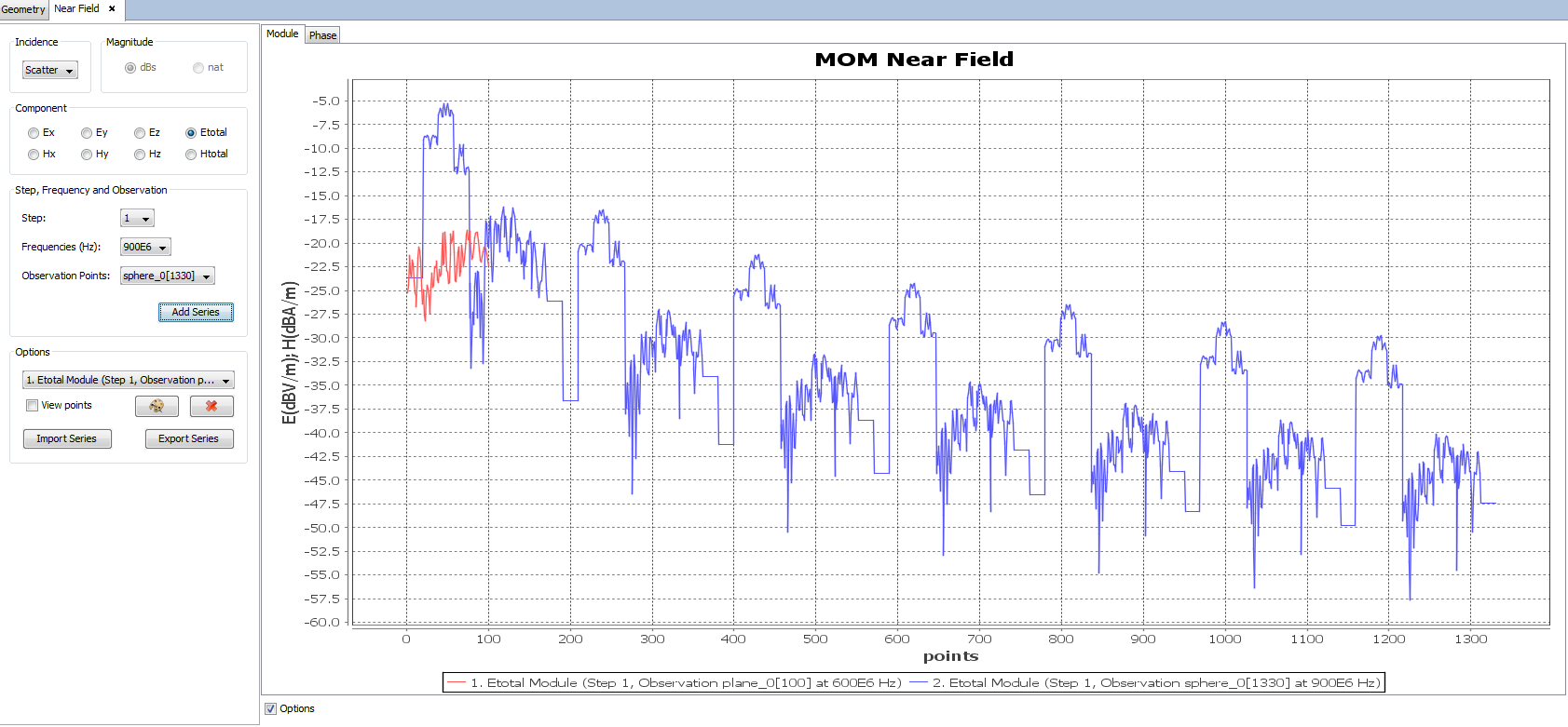 - Observation points List with all the observation points entities defined. Select the desired ones to plot the near field results.
