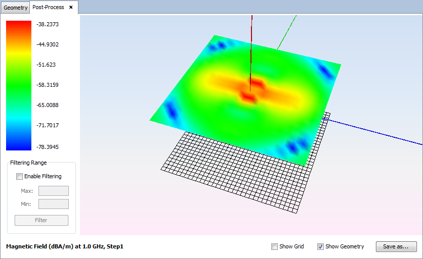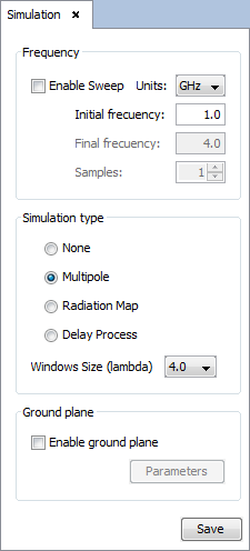 This example describesthe calculation ofthepoyting vector andthe maximum value of the field on an observationplaneofpointsnear the antenna.By calculating themultipolein this firstsimulation,thencalculatethe same dataonother observation, this timecylindrical,around yhe antenna and usingthe multipolefor a gainintime.