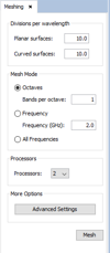 Select Mesh - Create Mesh to open the meshing configuration panel and then set the parameters as show the next figure.